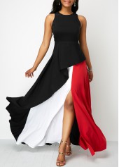 - Side Slit Sleeveless Color Block Sheath Dress