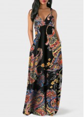 - Spaghetti Strap Bohemian Print Pocket Dress