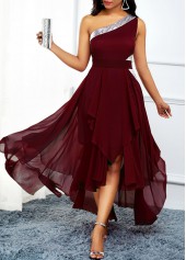 - One Shoulder Asymmetric Hem High Waist Dress