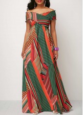 - Shirred Detail Printed Off the Shoulder Maxi Dress