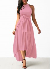 - Button Front Sleeveless Asymmetric Hem Belted Dress