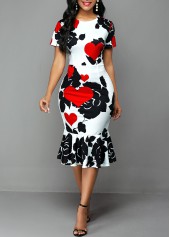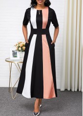 - Color Block Tie Front Ruffle Hem Sheath Dress