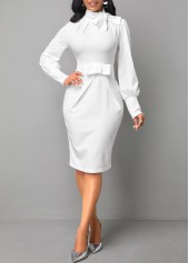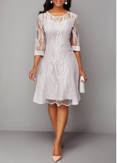 - Round Neck Three Quarter Sleeve Light Grey Dress