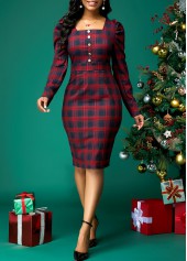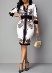 - Button Up Turndown Collar Printed Long Sleeve Dress