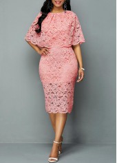 - Three Quarter Sleeve Lace Patchwork Chiffon Dress